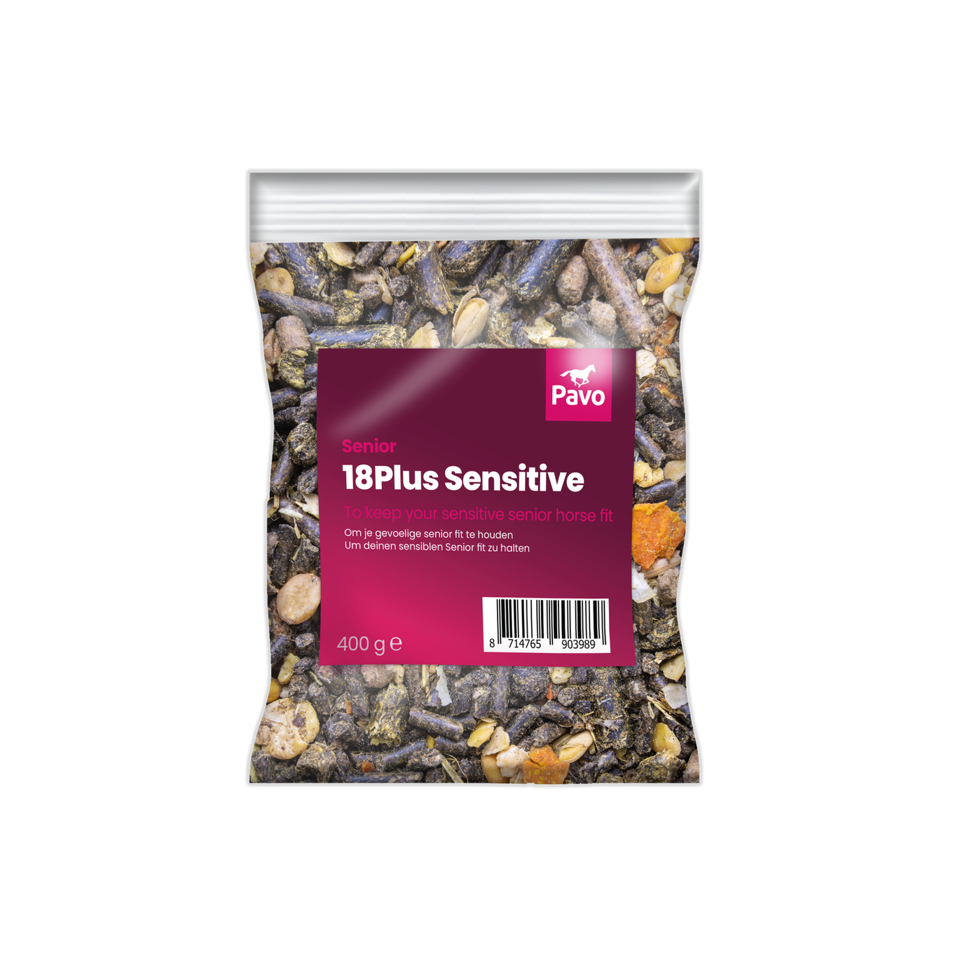 Pavo 18Plus Sensitive är en förstklassig müsli utvecklad för att möta de speciella näringsbehoven hos äldre hästar, särskilt de som är känsliga för socker, stärkelse och/eller spannmål. Pavo 18Plus Sensitive ger din äldre häst guldkantad omsorg.