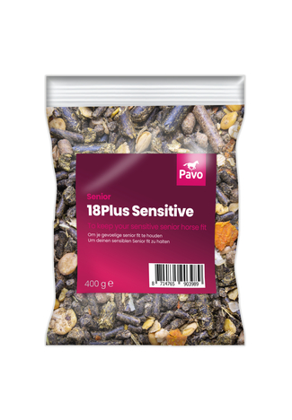 Pavo 18Plus Sensitive ingår i Pavo 18Plus-serien – en komplett serie med olika produkter som är särskilt utvecklade för åldrande hästar. Vill du upptäcka alla plus med 18Plus-serien? Klicka här.